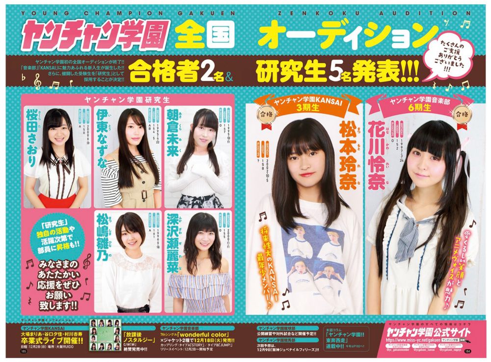 本サイトでも告知しておりました、アスターク所属タレントの松本玲奈が参加した『ヤンチャン学園3期生オーディション』の結果が発表されました。